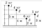Яке з наведених на рисунку тіл має найбільшу потенціальну енергію відносно Землі?