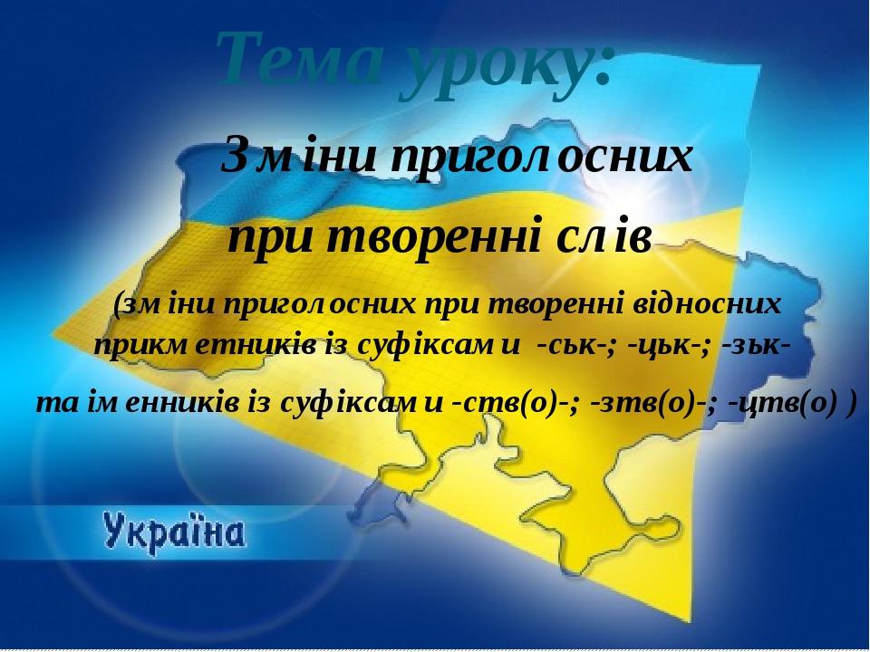 Прикметник із суфіксом -цьк утвориться від іменника