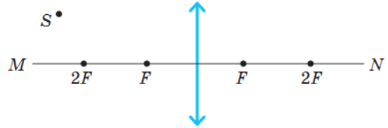 На рисунку зображено світну точку S. На якому з рисунків правильно показано положення зображення S1 світної точки S?