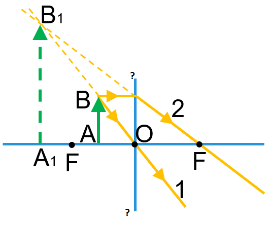 Відстань OF=50 см (Див. мал). Чому дорівнює Оптична сила лінзи.