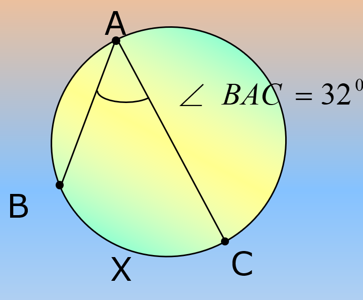 Знайдіть вписаний кут, якщо дуга на яку він спирається 44°