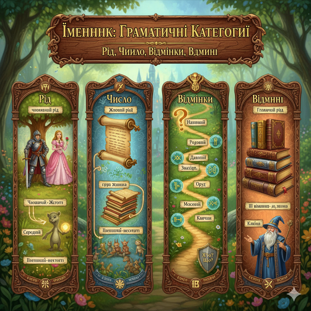Приклад запитання: Визначте рядок, у якому всі іменники належать до жіночого роду.