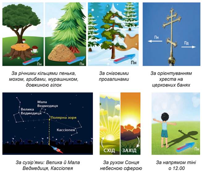 Приклад запитання: Орієнтуватися на місцевості означає ... .