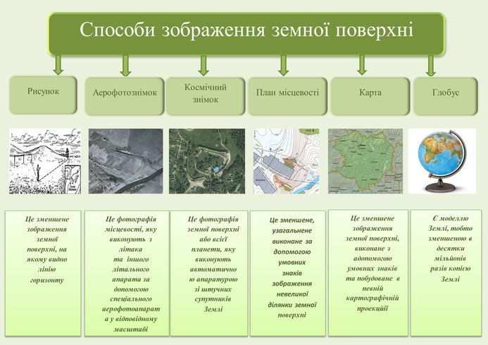 Приклад запитання: Зменшене в багато разів зображення на папері всієї поверхні земної кулі або окремих її частин за допомогою масштабу й умовних знаків - ... .