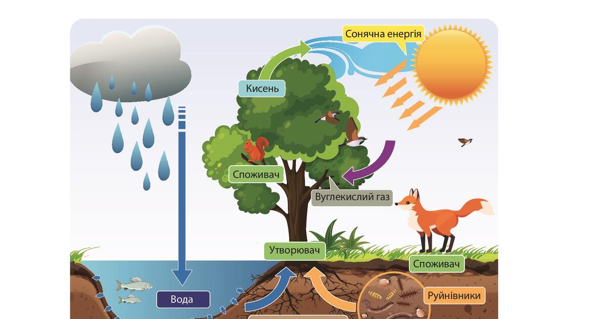 Приклад запитання: Хто в ланцюгу живлення є первинною ланкою, що створює поживні речовини для інших організмів?