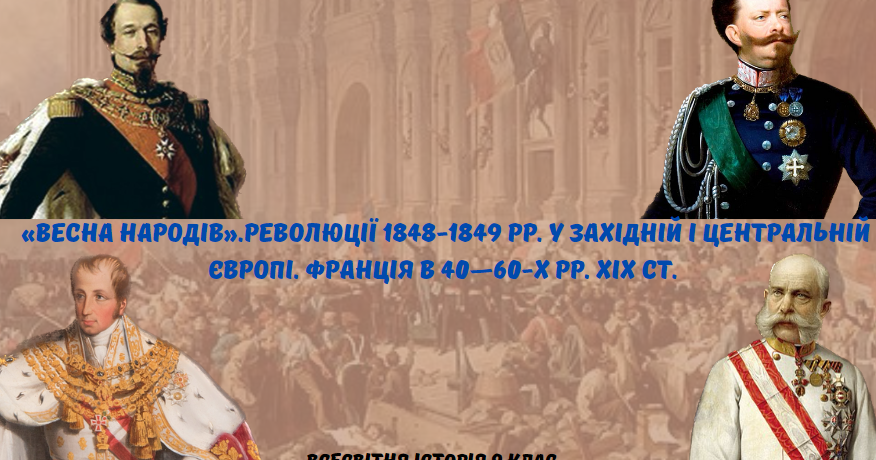 Приклад запитання: Події, що почалися у Франції і прокотилися країнами Європи у 1848 році називають: