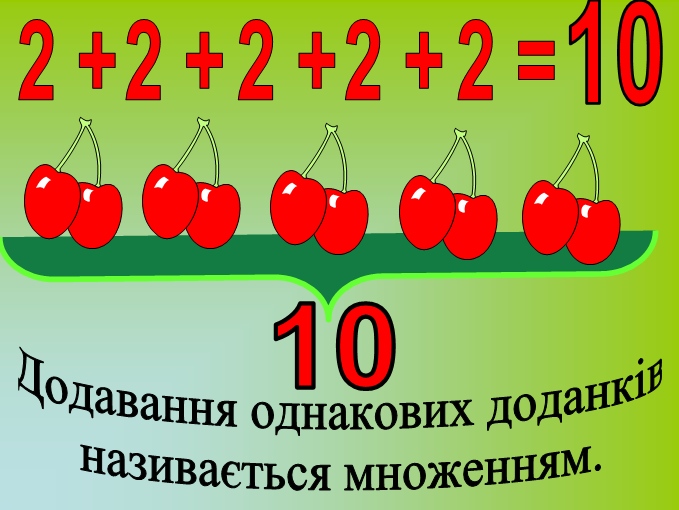 Приклад запитання: Перший множник 2, другий множник 4. Який добуток?