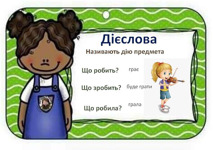 Приклад запитання: Дієслово - це частина мови, яка означає