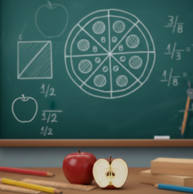 Приклад запитання: Який дріб позначає одну частину з трьох рівних?