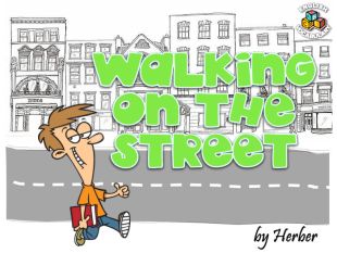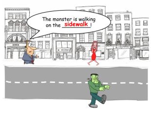The monster is walking on the _________!sidewalkrrrrr
