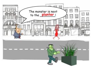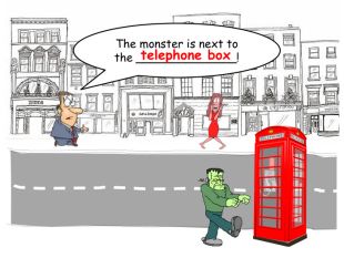 The monster is next to the ______________!telephone boxrrrrr