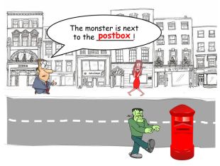 The monster is next to the ________!postboxrrrrr