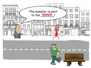 The monster is next to the _______!benchrrrrr