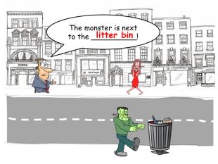 The monster is next to the __________!litter binrrrrr