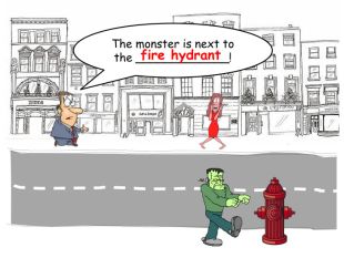 The monster is next to the _____________!fire hydrantrrrrr