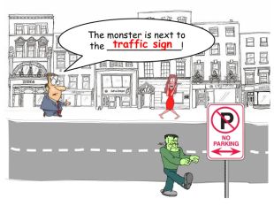 The monster is next to the _____________!traffic signrrrrr