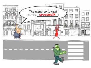 The monster is next to the ___________!crosswalkrrrrr