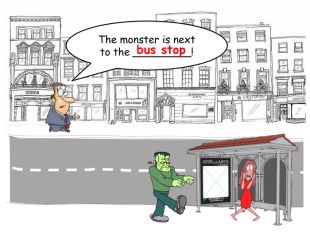 The monster is next to the _________!bus stoprrrrr