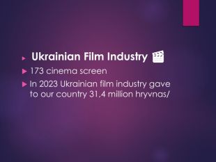 Ukrainian Film Industry 🎬173 cinema screen. In 2023 Ukrainian film industry gave to our country 31,4 million hryvnas/