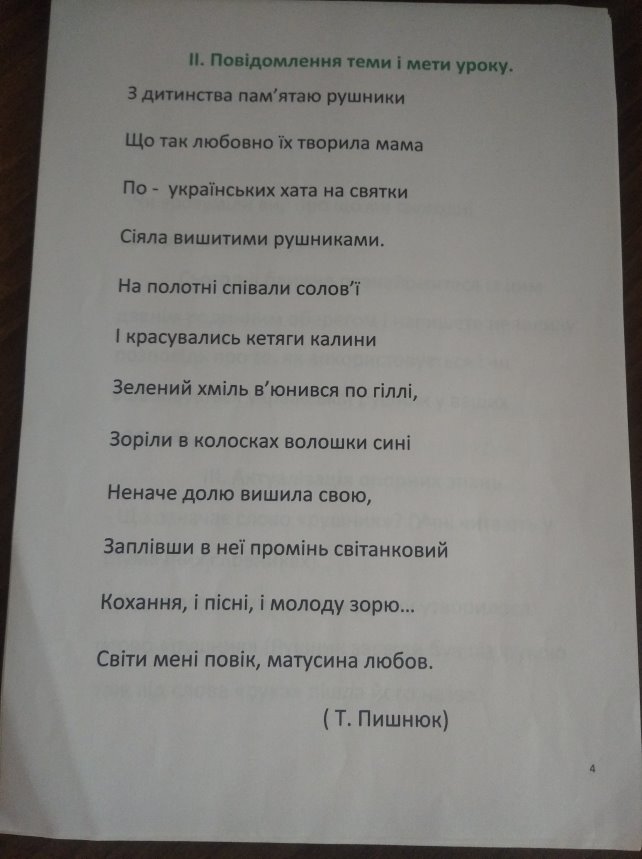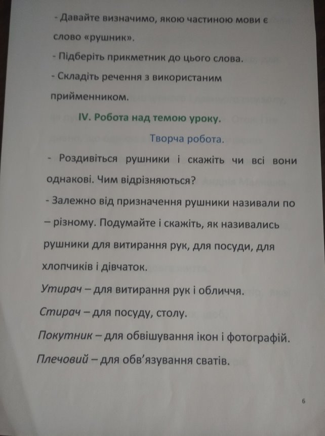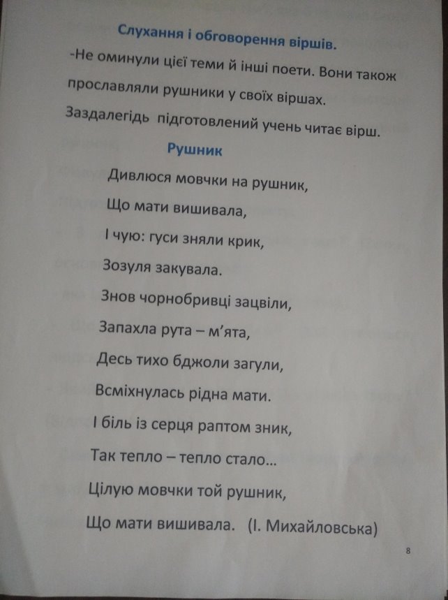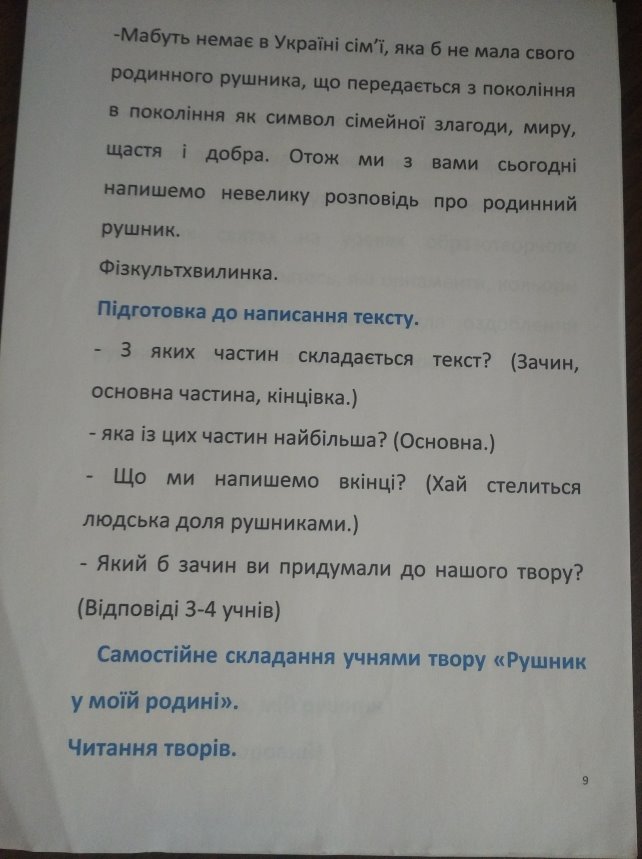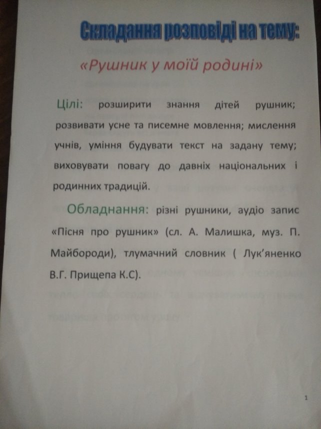 Урок української мови у 3 класі (складання розповіді на тему: "Рушник у моїй родині).