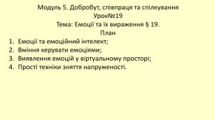 Емоції — це основа нашого психічного здоров’я. Прояви емоцій можуть як допомагати, так і перешкоджати ефективній взаємодії та спілкуванню. Поведінка людини, прояв її емоцій, реагування на навколишній світ — вчора, сьогодні та завтра — може відрізнятися. Те, що вчора допомагало опанувати себе та вирішити проблему, сьогодні може не спрацювати, і ситуація потребуватиме інакших підходів.