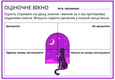 Формувальне оцінювання. Прийом “ Оціночне вікно”.