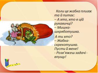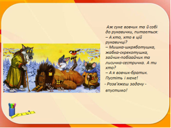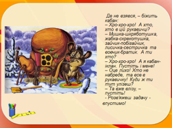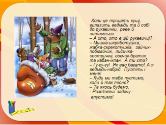 Тип уроку. Засвоєння навичок і умінь. Урок–казка «Хто в рукавичці живе»