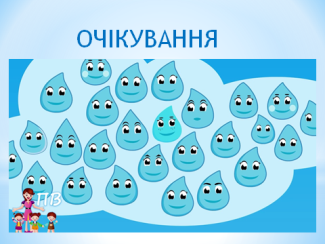 Вправа “Очікування “(діти на паперових краплинках пишуть очікування від сьогоднішнього уроку, в кінці уроку вивішують краплинки на дошку)