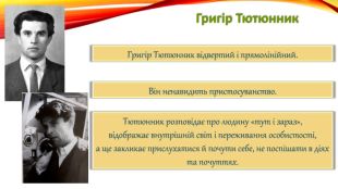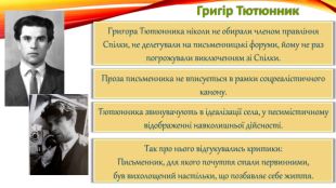 Григір Тютюнник. Що ж вирізняє творчість Григора Тютюнника у літературному процесі?Важливим елементом його творчості є генетична пам’ять,що не властива радянському курсу літератури. Звідти тікає молодь на шахти та заводи. Радянська цензура стежила за літературною діяльністю Григора Тютюнника. Він перебував у так званих «чорних списках», ним зацікавились радянські спецслужби.