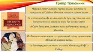 Григір Тютюнник. Щоб видати новелу, Григір Тютюнник змінив акценти у творі. Батькове ув’язнення відійшло на другий план. На першому ж плані Любов. Чому обидві жінки, кохаючи одного чоловіка, підтримували одна одну?Бо їх об’єднувало спільне горе, і спогади, і величне почуття любові. Пам’ятайте про те, що любов возвеличує, а не принижує. Любов треба оберігати, про неї треба піклуватися, а якщо так сталося, що ваша любов не мала взаємності, то не ображати або проклинати, а зрозуміти, поговорити й відпустити.