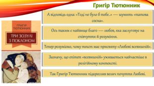 Григір Тютюнник. А відповідь одна: «Тоді не було б тебе..» — шумить «татова сосна». Ось таким є найвище благо — любов, яка заслуговує на співчуття й розуміння. Тепер розуміємо, чому текст має присвяту «Любові всевишній». Зазначу, що епітет «всевишній» уживається найчастіше в релігійному контексті. Так Григір Тютюнник підкреслив велич почуття Любові.