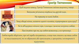 Григір Тютюнник. Пригадаймо,Який напружений сюжет на нас чекає?Уявіть, коли вам хтось подобається так, що аж дух перехоплює,але він чи вона не може відповісти вам взаємністю,бо кохає іншого або іншу. Як тут вчинити?Григір Тютюнник дає відповідь на це запитання: поважати почуття інших. Як це зробити?Проаналізуймо зміст твору, який можна умовно поділити на 4 частини.
