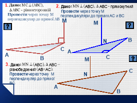 Вчитель: Сьогодні на уроці ми розглянемо теорему про три перпендикуляри, навчимося її застосовувати при розв’язуванні різних задач, Ви зможете переконатися у необхідності її використання у повсякденному житті.