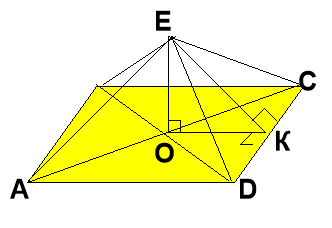 Оскільки т.Е рівновіддалена від сторін АВСD, то т.О – центр вписаного кола ( точка перетину діагоналей). Якщо ЕК ┴ СD, то за