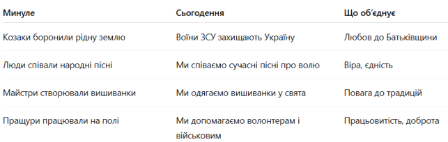 — Діти, сьогодні ми поговоримо про те, чому важливо знати своє минуле. Подумайте: якби людина нічого не знала про те, що було раніше, чи змогла б вона зрозуміти себе, свою родину, свій народ?