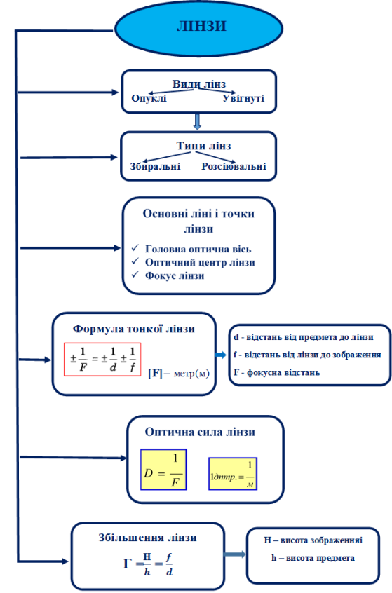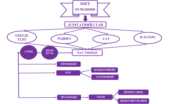 Прикладом є кластери «Лінзи», «Статика», «МКТ речовини», які я складаю, разом зі студентами, при вивчені нової теми.