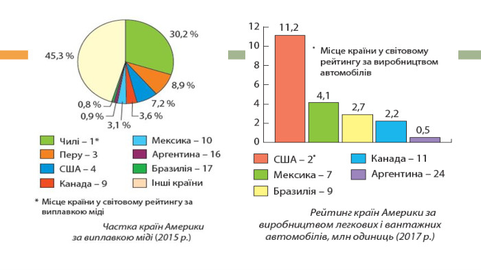 ОЧІКУВАНІ РЕЗУЛЬТАТИобґрунтувати особливості розміщення основних осередків переробної промисловості в Америці; дати аналіз структури та географії вторинного та третинного секторів економіки регіону; зрозуміти причини нерівномірності розвитку субрегіонів Америки, особливості їх участі в міжнародному поділі праці; дізнатися про зв’язки України з країнами Америки;вдосконалити вміння працювати з картою; інформаційними ресурсами, здатність до пошуку та засвоєння нових знань