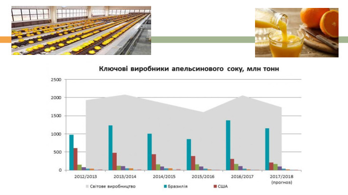 Харчова промисловість Для країн Америки експортне значення мають виробництво борошна, м’яса, сигар, молочних та рибних консервів, консервованих ананасів, фруктових соків, конфітюрів з тропічних фруктів, томатної пасти, цукру з тростини, екзотичних напоїв (рому, текіли) тощо. Бразилія забезпечує 80 % світового експорту апельсинового соку та концентрату.
