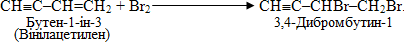 Зважаючи на те, що потрійний звязок має меншу реакційну здатність порівняно з подвійним, при обмеженій кількості галогену за певних умов стає можливим селективне приєднання Hal2 та інших реагентів саме до подвійного звязку при одночасній наявності в молекулі і потрійного звязку, наприклад: