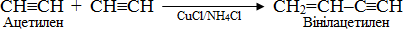 Важливою особливістю алкінів є схильність до олігомеризації – тобто сполучення двох чи декількох молекул алкіну (мономера), внаслідок чого утворюється ненасичений олігомер – продукт нормальної чи циклічної будови, Наприклад: