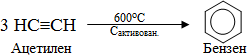 Гомологи ацетилену в присутності металоорганічних сполук хрому, нікелю і кобальту перетворюються в похідні бензену: