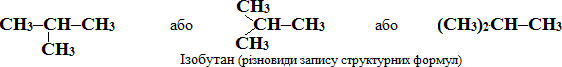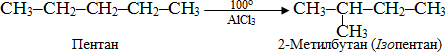 Ще одна характерна для алканів реакція – ізомерізація, що супроводжується зміненням структури карбонового ланцюгу при збереженні вихідного складу вуглеводню. Шляхом ізомерізації одержують із алканів нормальної будови розгалужені ізомери, що містять метильний радикал –СН3, сполучений з другим від краю основного ланцюгу атомом С, наприклад: