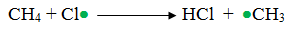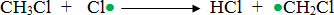 Далі метильний радикал атакує молекулу хлору Cl2, в якій відбувається гомолітичний розрив звязку. Утворюється молекула хлорметану та новий радикал хлору: