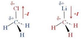 Негативний індуктивний ефект (–І) приписують тим атомам і групам, які зміщують електронну густину -зв’язку в свій бік, а позитивний індуктивний ефект (+І) – тим, від яких зміщується електронна густина -зв’язку.