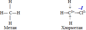 Отже, завдяки дії негативного індуктивного ефекту (–І) атома хлору в молекулі СН3Cl відбувається поляризація -звязків С–Н порівняно з σ-зв’язками в молекулі СН4:
