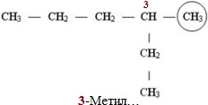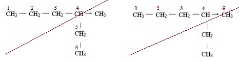 Інші варіанти нумерації не годяться, оскільки або лацюг не буде найдовшим, або атом С, сполучений з замісником-радикалом, не матиме найменшого номера: