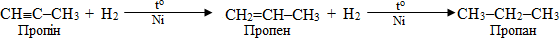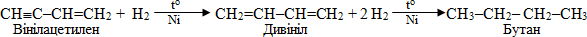 Якщо вуглеводень містить одночасно подвійні та потрійні зв’язки, до водень спочатку приєднується до подвійного зв’язку, а потім – до потрійного, наприклад: