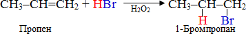 Виключенням з правила Марковникова є взаємодія алкенів з HBr у присутності пероксидних сполук (Н2О2, С6Н5СОООН, Na2O2), які викликають пероксидний ефект Харраша: атом Н приєднується до менш гідрогенізованого атома карбону, а атом Hal – до більш гідрогенізованого атома С проти правила Марковникова, наприклад: