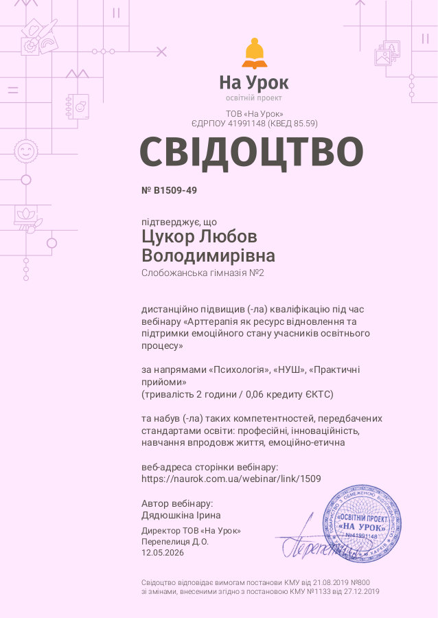 Доступ до завантаження свідоцтва відкриється після закінчення прямого ефіру - після того, як ви пройдете навчання під час вебінару та виконаєте перевірочний тест.