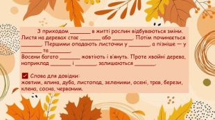 Завдання: «Осінні явища в житті рослин»Прочитай текст і встав пропущені слова.